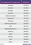 Gehaltsstudie Gehälter 2017: Ingenieure gehören zu den Top-Verdienern Ingenieure gehören in Deutschland zu den Top-Verdienern. Im Durchschnitt verdient ein Ingenieur 67.681 Euro im Jahr. Einer aktuellen Studie des Hamburger Gehaltsvergleichs Gehalt.de zufolge zahlen Unternehmen in Stuttgart und Frankfurt die höchsten Gehälter. Pressemitteilung des Unternehmens 26. April 2017